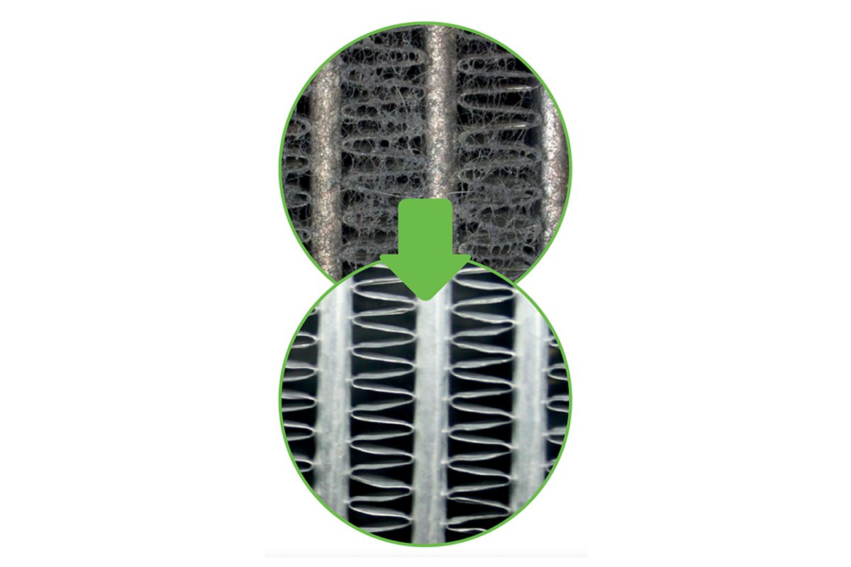 Das Verfahren kombiniert eine chemische und mechanische Reinigung, kommt ohne Duft- und Farbstoffe aus und ist biocidfrei. Die Wirksamkeit des Systems ist unabhängig geprüft, allergikerfreundlich bestätigt und trägt zudem zu einem verbesserten Luftstrom und einer effizienteren Funktion der Klimaanlage bei.
